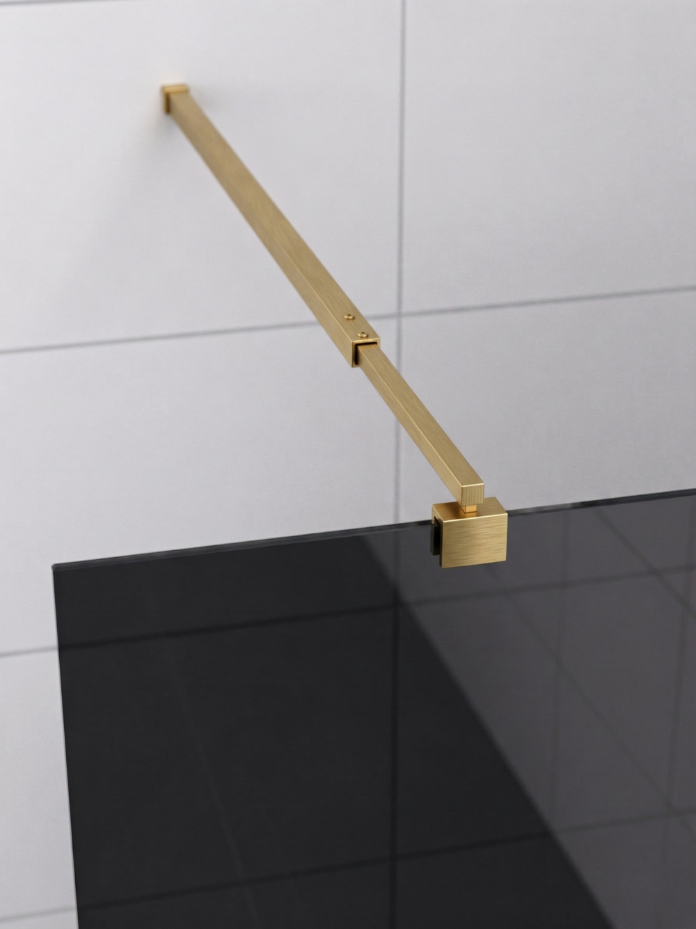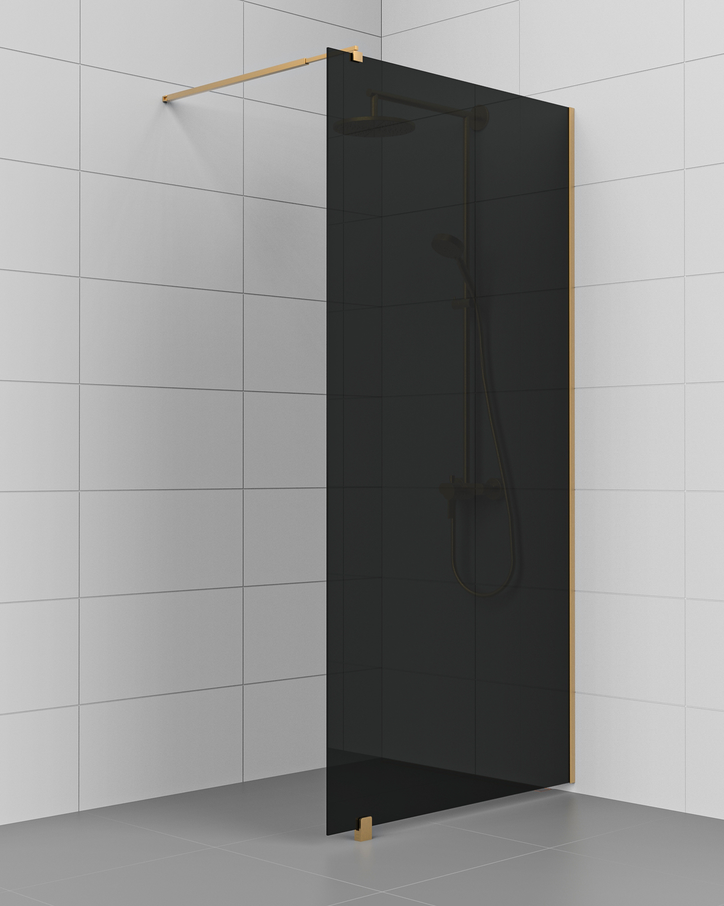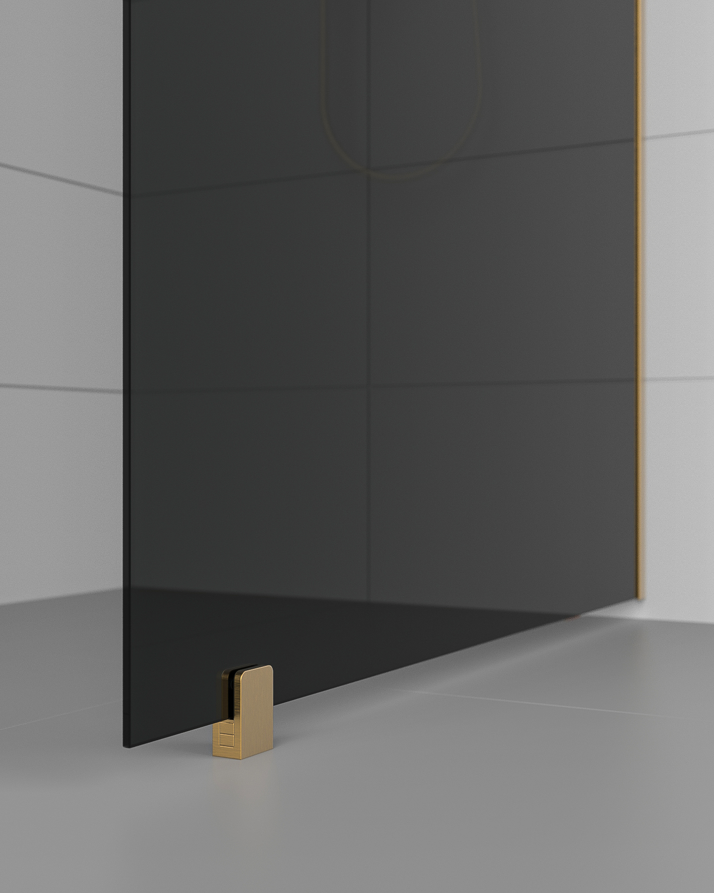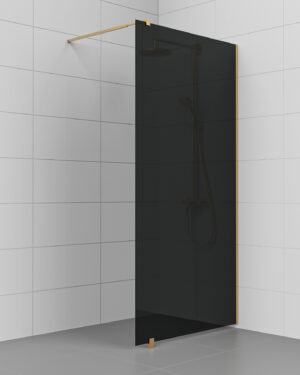 Kiinteä suihkuseinä KL25-KL27 – lattia- ja seinäprofiili sekä sivutuki harjattua messinkiä