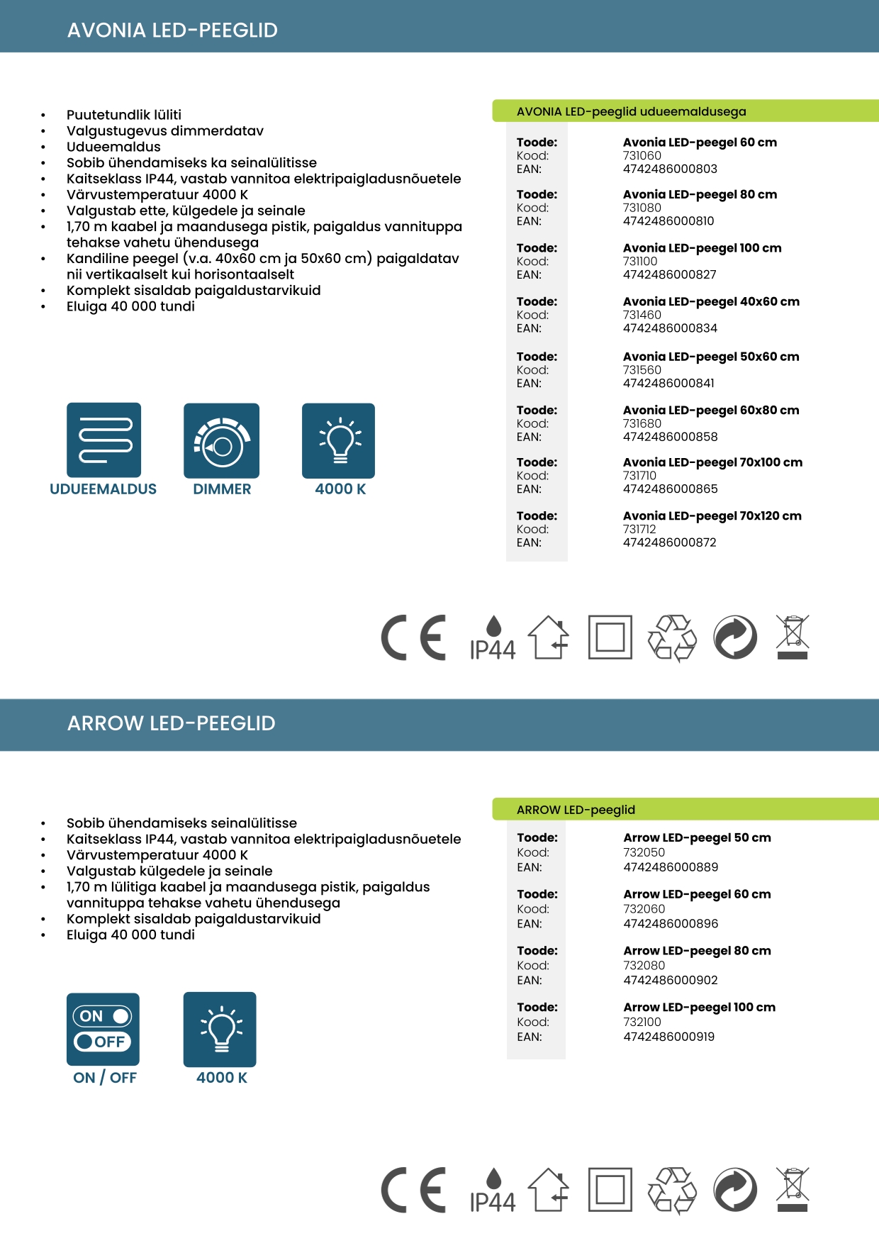LED-peeglid ja valgustid